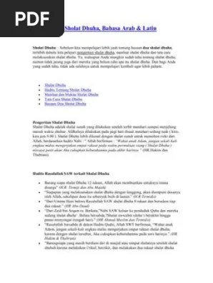 Bacaan doa setelah sholat dhuha dalam format pdf ini dapat dijadikan referensi bagi anda yang ingin mengerjakan ibadah sholat sunnah dhuha. People also downloaded these pdfs. Jumlah rakaat sholat dhuha minimal 2 rakaat. Pengertian sholat dhuha shalat dhuha adalah shalat sunah yang dilakukan setelah terbit matahar. Doa setelah sholat dhuha arab, . A) berniat untuk melaksanakan shalat sunat dhuha setiap 2 rakaat 1 salam.